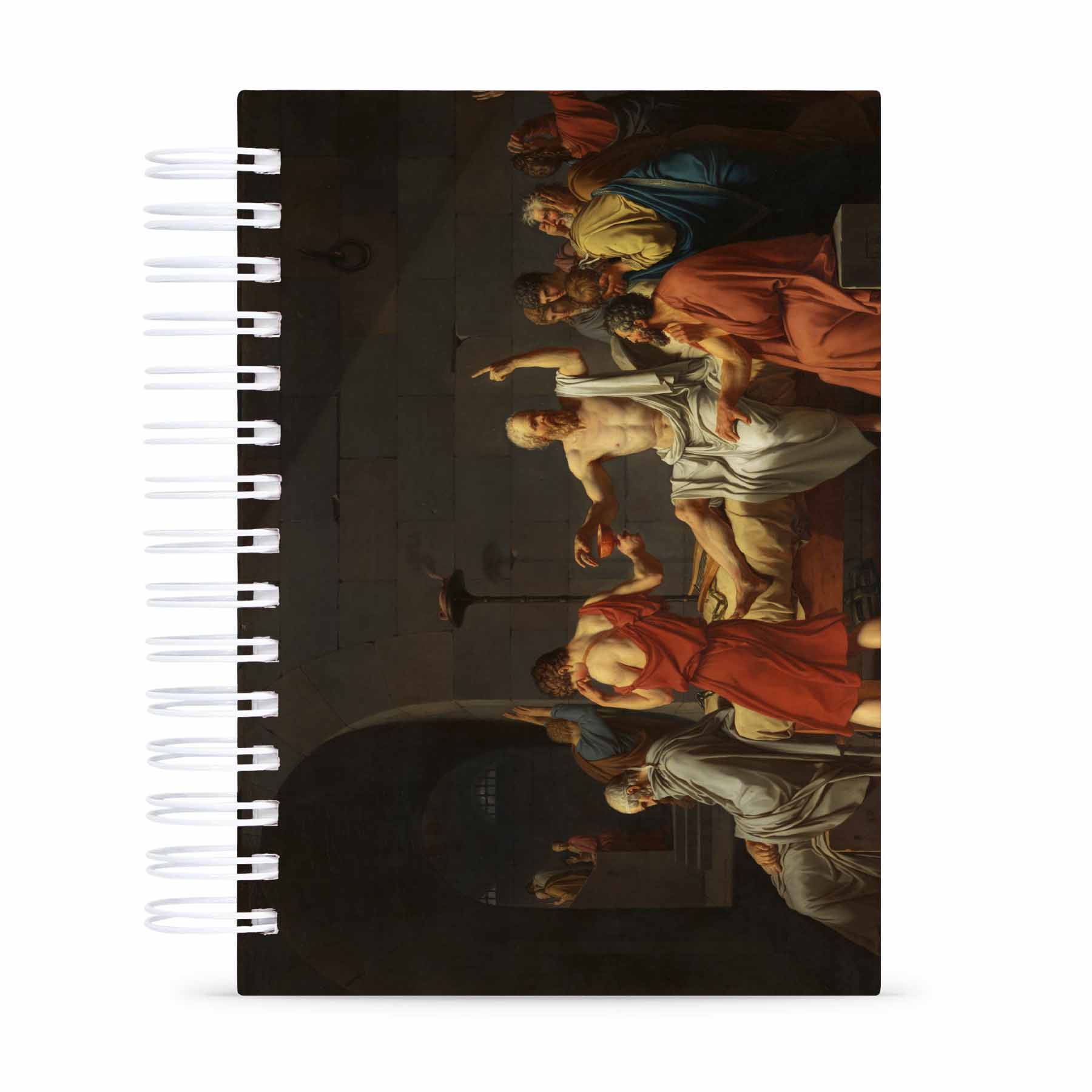 Nosso Planner Semanal A Morte de Sócrates é feito no tamanho A5, e mede 21x15cm.